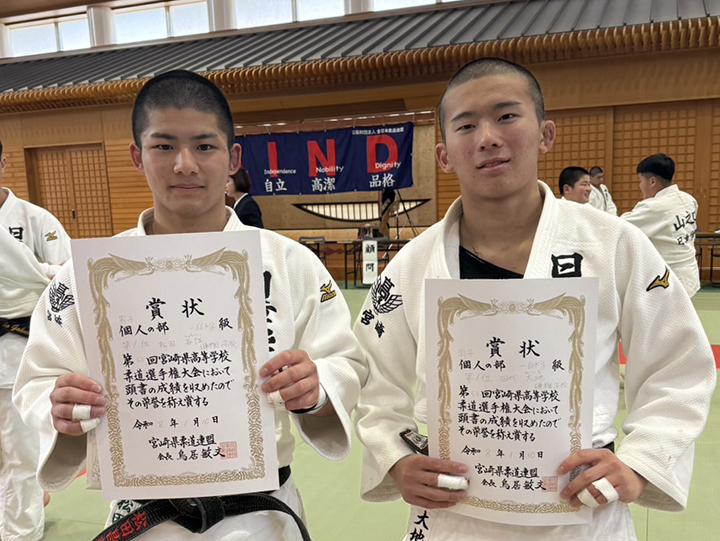第53回宮崎県高等学校柔道選手権大会にて本校男子柔道部2名が見事階級別優勝を飾りました